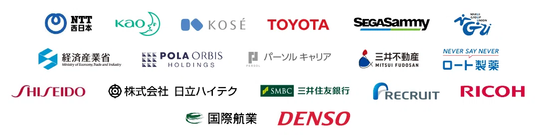 トヨタ自動車、NTT西日本、花王グループカスタマーマーケティング、 デンソー、三井不動産、リクルート、三井住友銀行、ロート製薬、日立ハイテク、マルイグループユニオン、ポーラ・オルビスHD、セガサミーHD、他多数